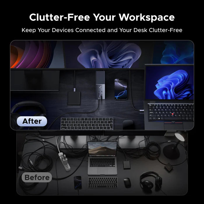 True 100W Laptop Charging: Deliver full-speed 100W PD charging to high-performance laptops, replenishing 50% battery in 27 minutes. The USB-C PD port also supports charging your phone/tablet up to 27W (Note: The 100W upstream USB-C port and 27W USB-C output share a combined power of 100W. When both are in use, the maximum output power per port may be less than the individual rated maximum.