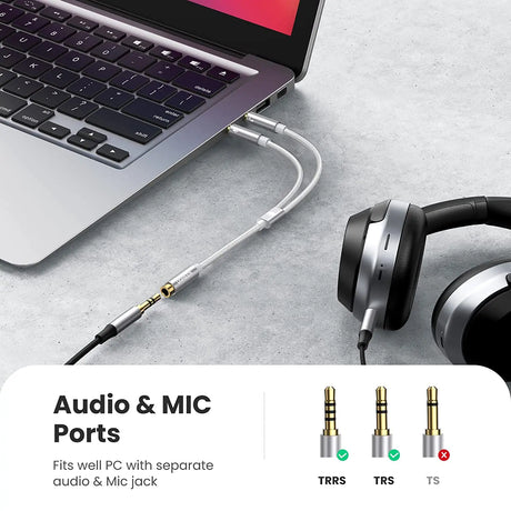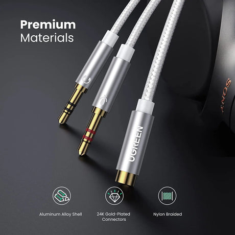 यूग्रीन 20 सेमी मेटल टीआरआरएस फीमेल टू डुअल मेल ऑडियो टू पीसी एडाप्टर वाई स्प्लिटर, 3.5 मिमी (10790)