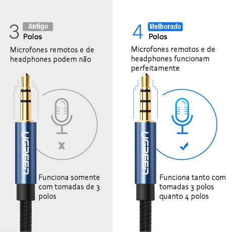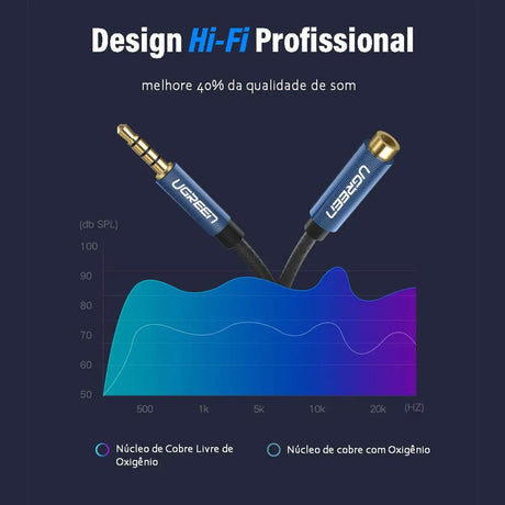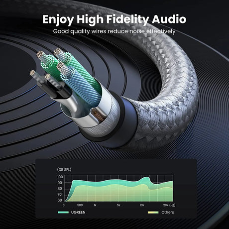 यूग्रीन 3.5 मिमी पुरुष से 3.5 मिमी महिला एक्सटेंशन केबल ब्रेड 0.5 एम (40672)
