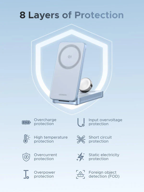 Ugreen 25W MagFlow 3-in-1 Magnetic Wireless Charger Foldable and Portable, iPhone 12 and Later, AirPods2 and Later, Apple Watch(65901)