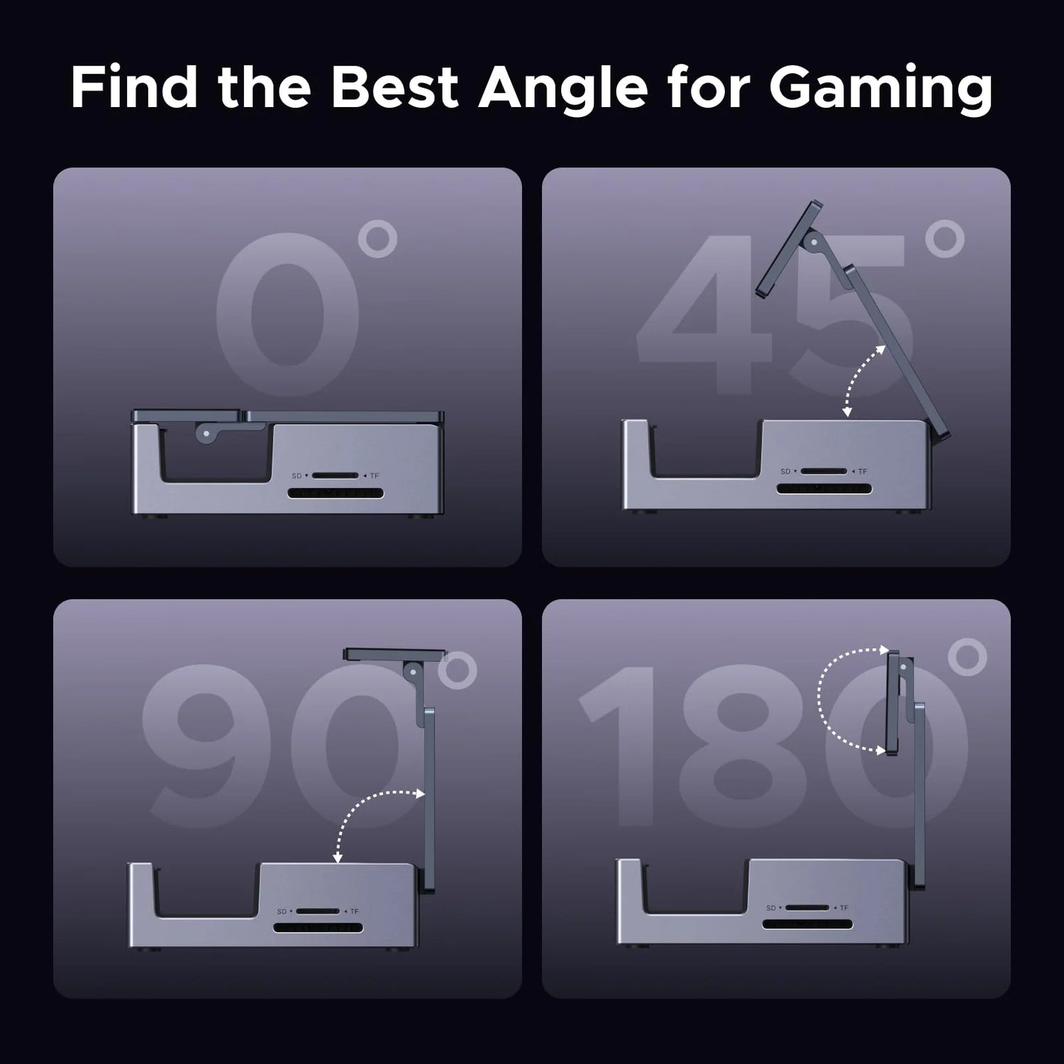 A smart foldable stand supports handheld consoles like the Steam Deck, ROG Ally, Legion Go, and more — without blocking cooling vents so your device stays cool under heavy use.