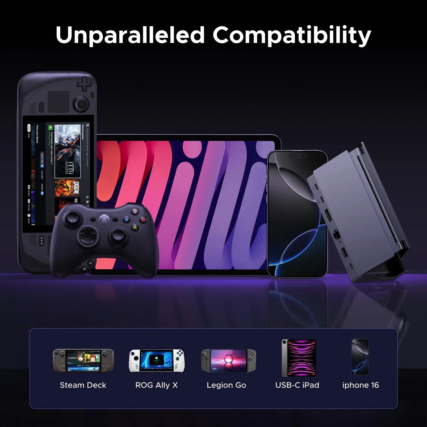 This dock is ideal for gamers, creators, and professionals who need a compact but powerful USB-C hub that bridges handheld devices with desktop-level performance and displays.